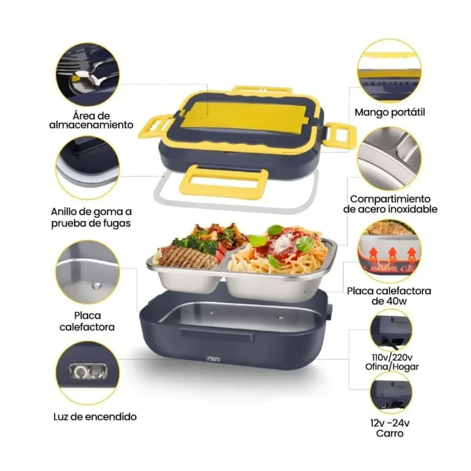 Lonchera eléctrica de capacidad 1.5L diseñada para mantener tus alimentos a la temperatura ideal durante el día. Equipada con tecnología de calentamiento eficiente, se conecta fácilmente a cualquier toma de corriente estándar. Su tamaño compacto la hace perfecta para llevar al trabajo, escuela o viajes cortos. Cuenta con materiales duraderos que garantizan años de uso confiable. Ideal para quienes buscan disfrutar de comidas caseras calientes sin depender de microondas externos.